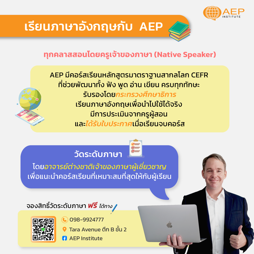 โรงเรียน AEP มีคอร์สเรียนที่สอนสดโดยครูเจ้าของภาษาทั้งหมด
