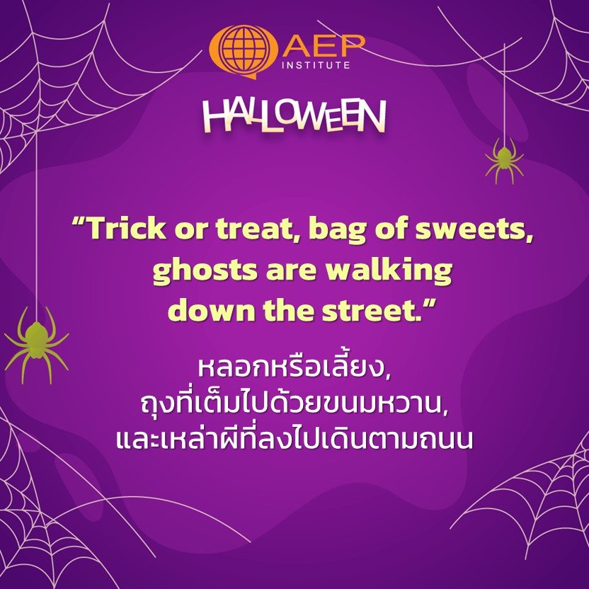#6 Trick or treat, bag of sweets, ghosts are walking down the street.